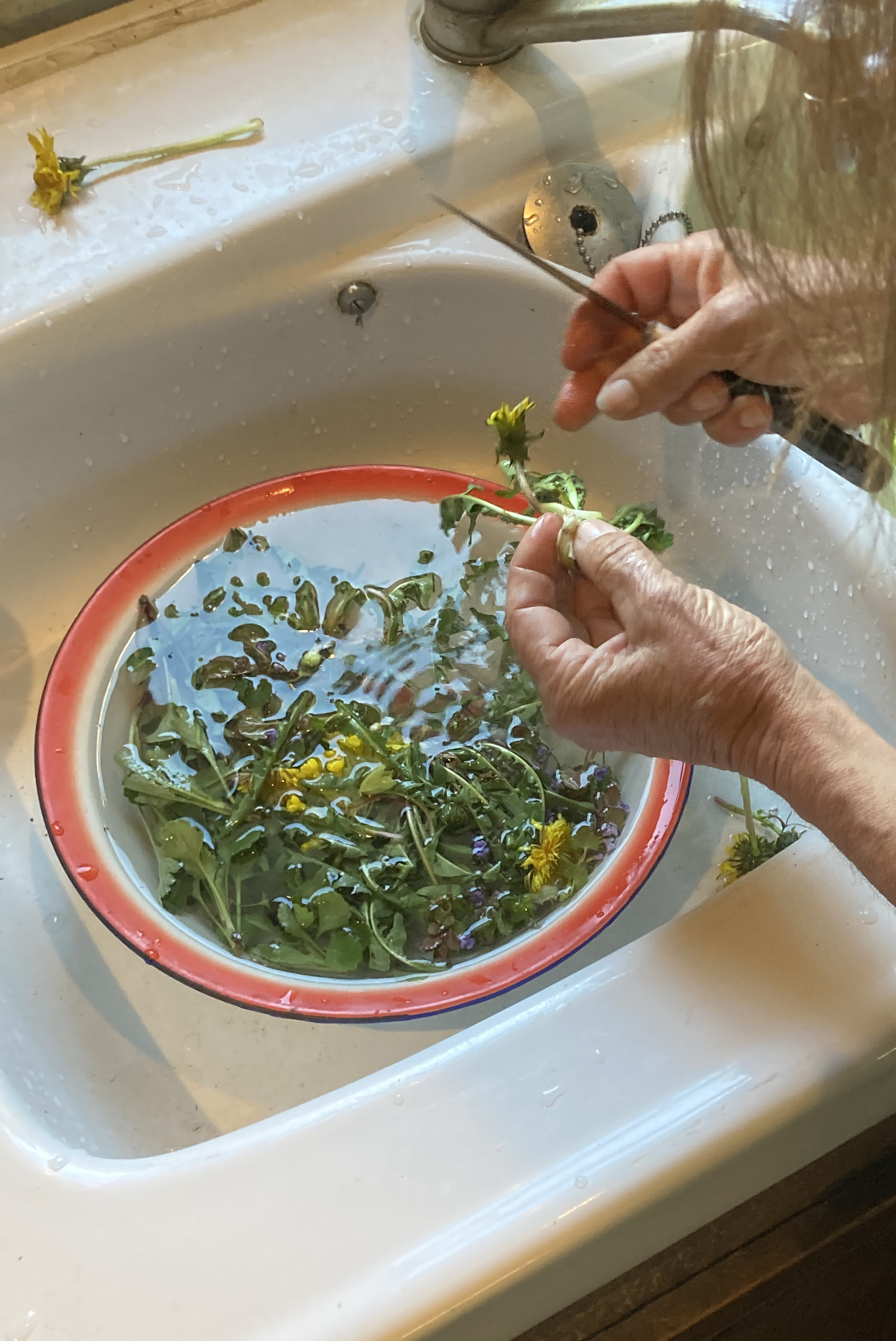 Alors pendant ces deux mois, en plus du travail avec Marine et Fabien, j’ai fait un peu de couture, et de teinture naturelle. Mais j’ai surtout passé la plupart de mon temps dehors. J’avais trouvé mes endroits préférés, j’y retournais régulièrement pour voir comment ils changeaient. Je faisais des cueillettes pour préparer des sirops : de pâquerettes, de fleurs d’aubépine, de fleurs de sureau, de romarin, de fleurs d’acacia. Je passais mon temps sur des blogs de recettes, ou dans les livres de Marine. J’essayais de retenir le nom des oiseaux, des moutons et des fleurs.