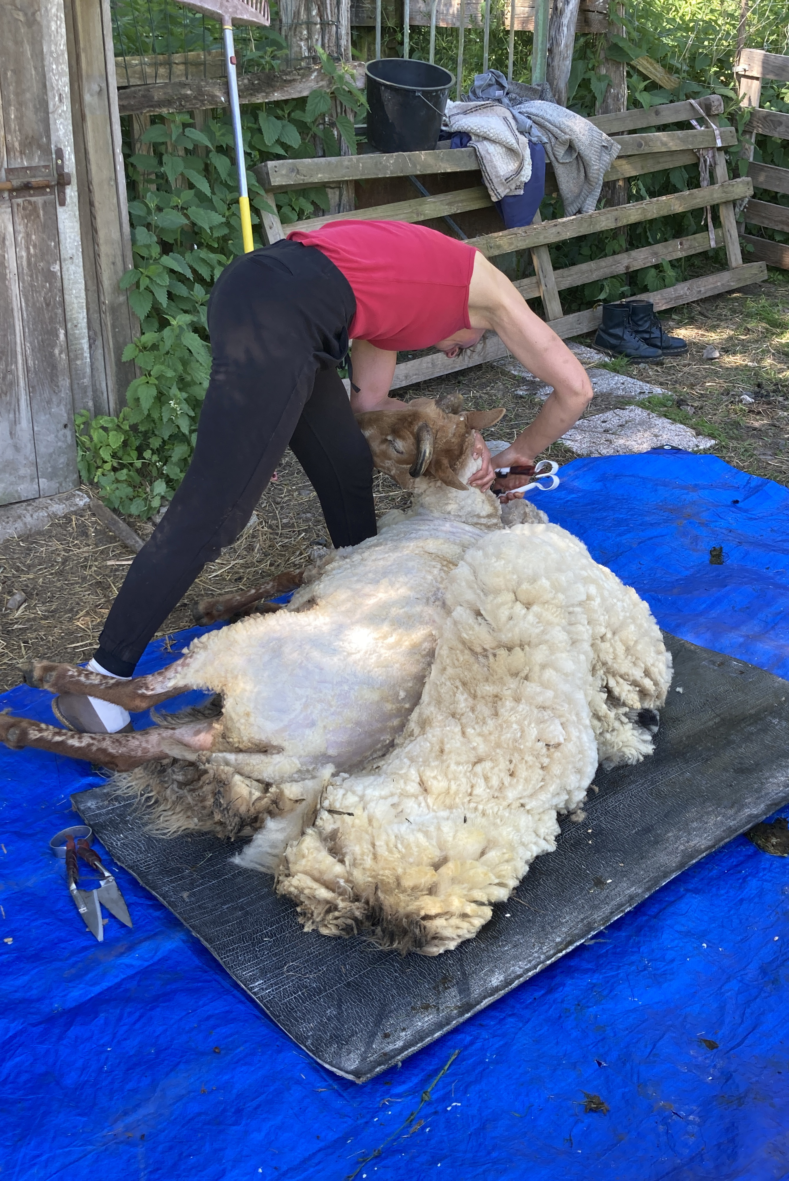 Pendant ce temps (pendant leur mois d’absence au printemps) ce sera l’occasion de prendre soin des enclos, d’enlever le fumier, de nettoyer la remorque, de laisser les fleurs pousser, de préparer le moment de la tonte qui arrive à grand pas. Ou alors de laver et de trier la laine de l’année passée, de finir de mettre en pelotes les grosses bobines, de réfléchir à la confection des prochains vêtements.
