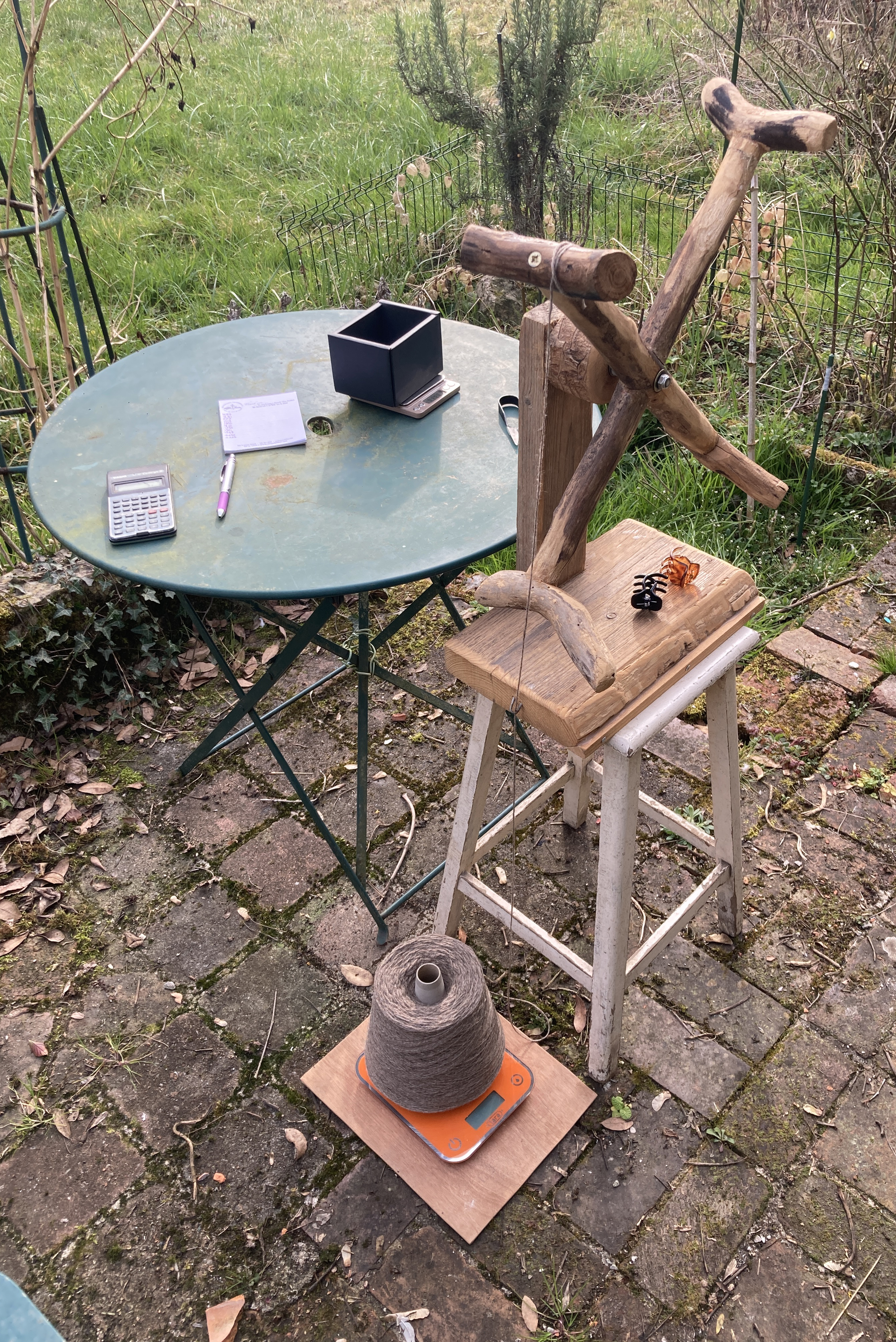Auprès de Marine, j’apprends à filer la laine, sur un de ses rouets en bois. C’est assez technique et difficile au début, il faut aller vite avec ses mains, mais lentement avec ses pieds. Il faut arriver à dissocier les tâches,