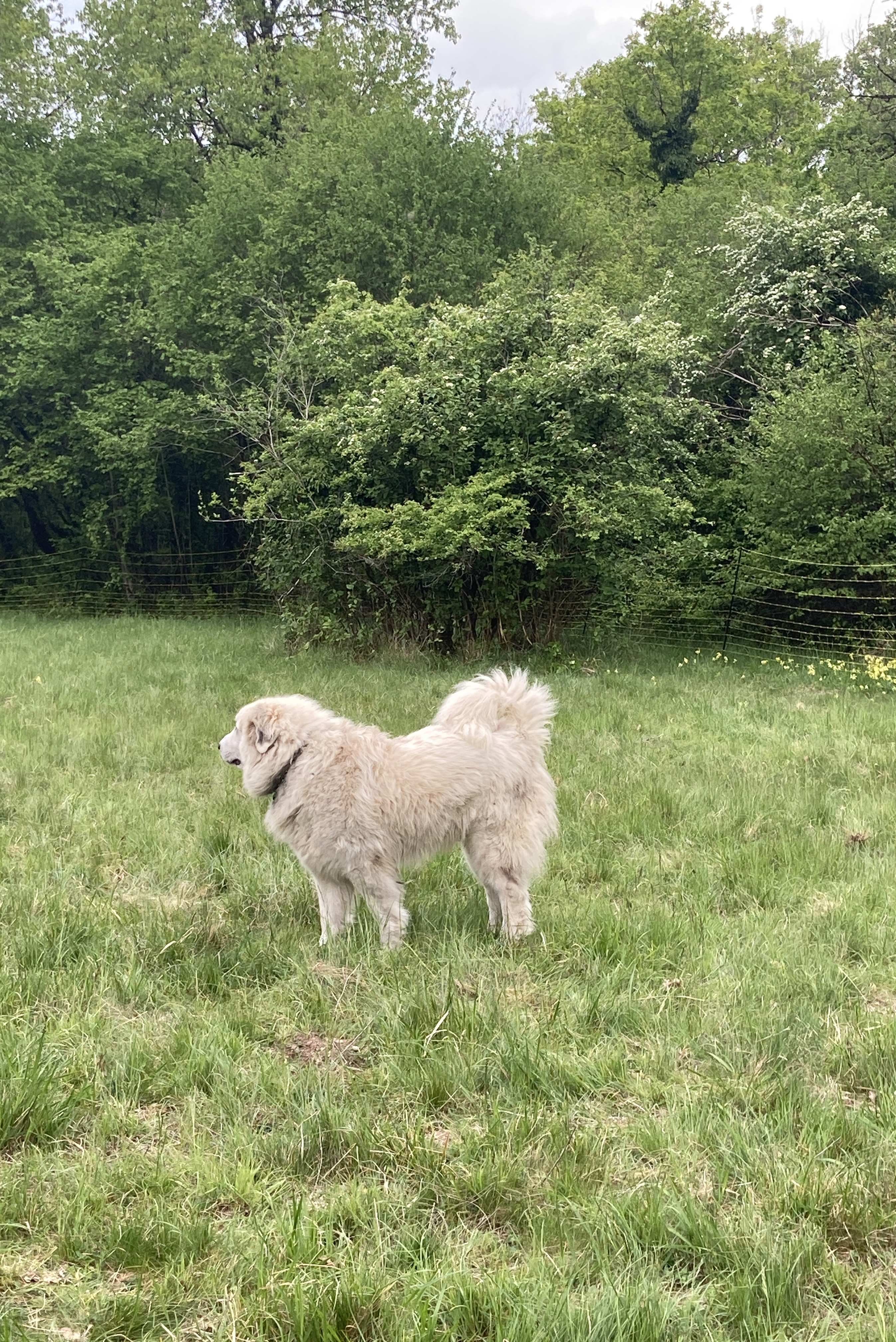 au fil des années, Marine et Fabien en ont récupéré plusieurs, pour arriver aujourd’hui au nombre de 18. Il y a également un gros chien blanc, un patou, qui s’appelle Séquoia, qui vit et veille continuellement avec et sur les moutons, et qui raffole de calins parce qu’il n’y a pas assez de travail pour lui.